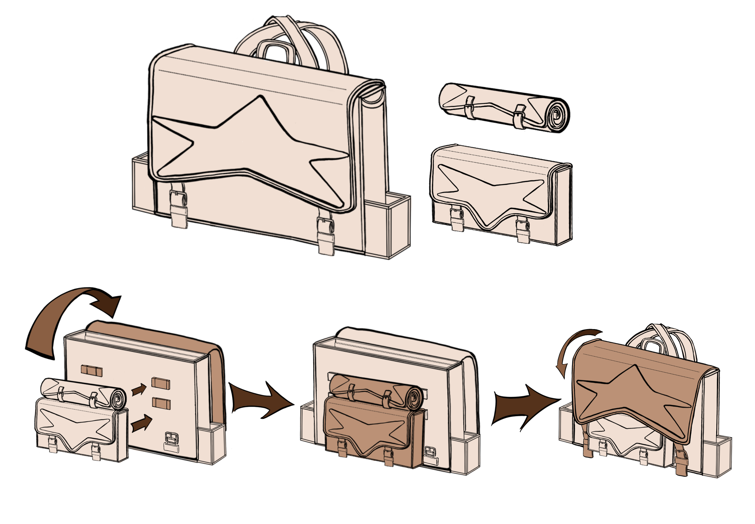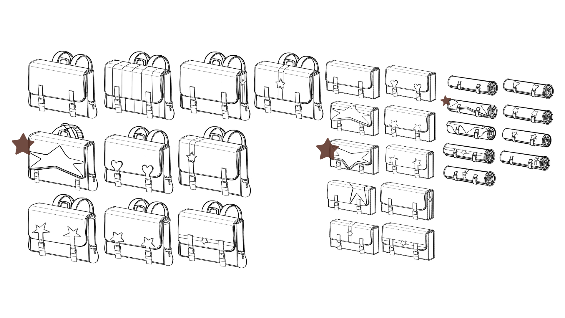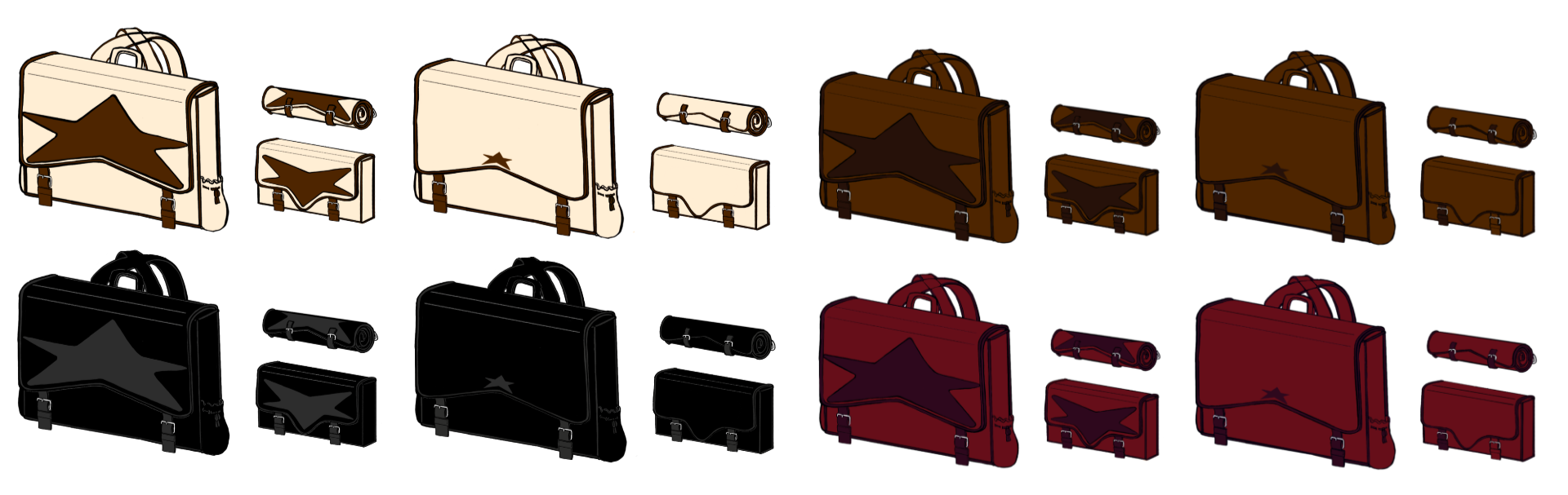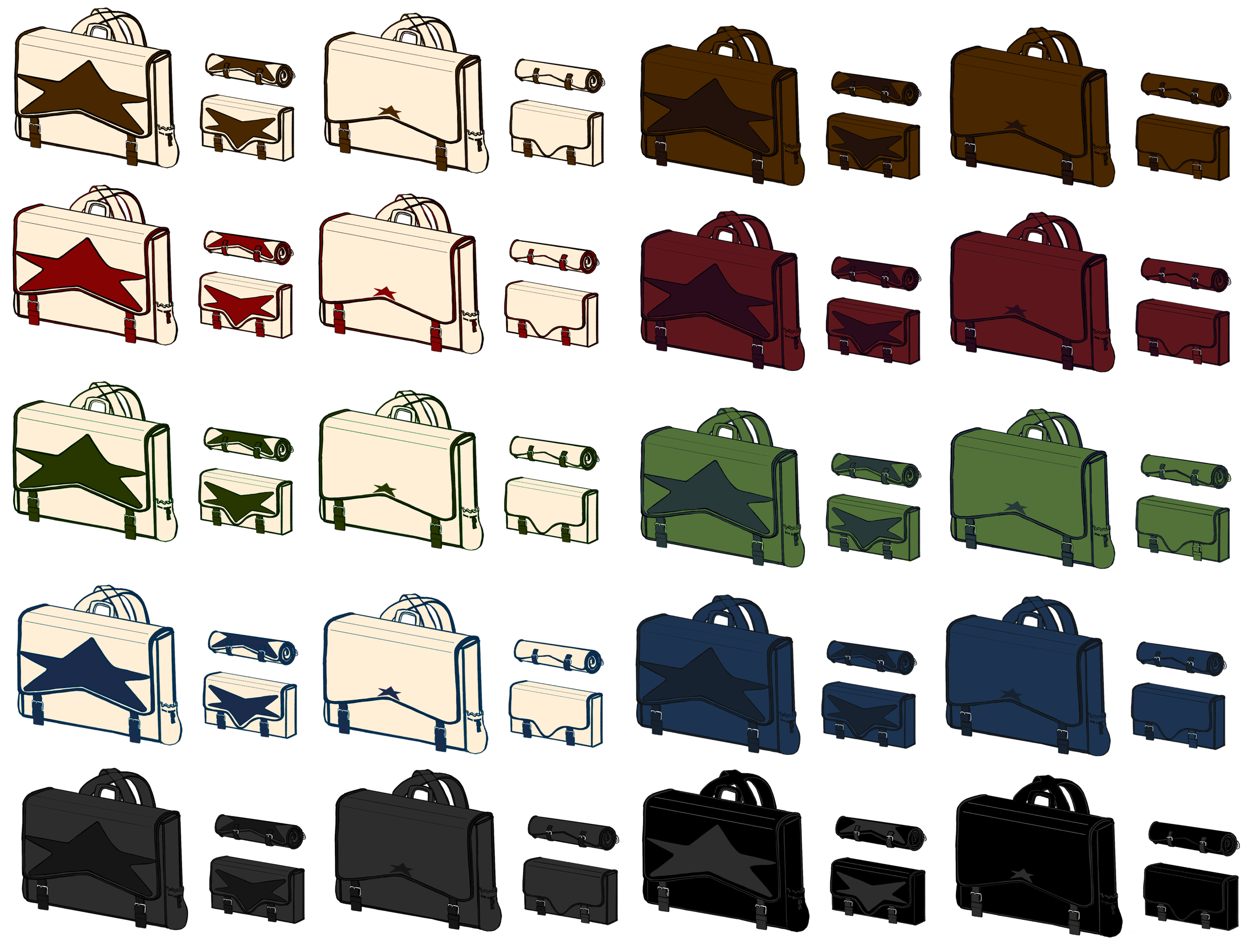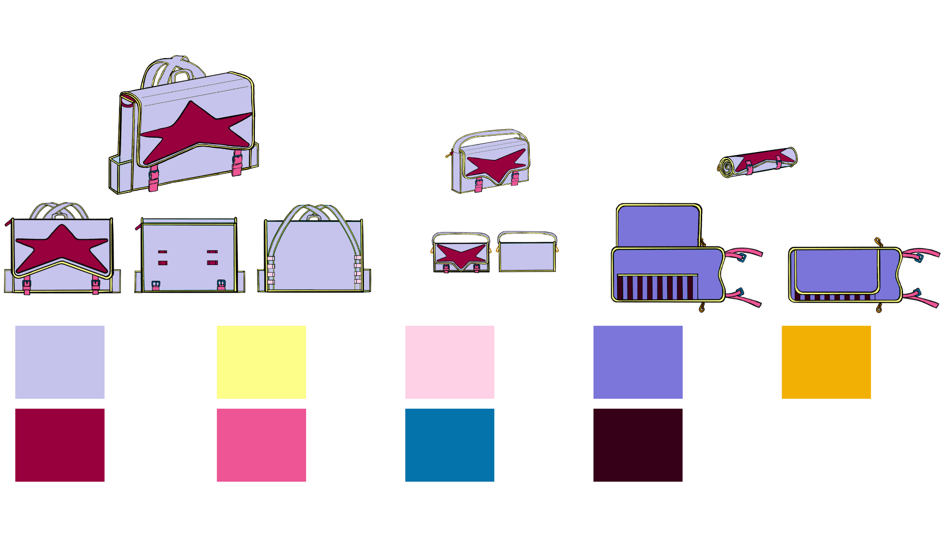 In my color exploration, I made sure to add a version of the bag without a giant star for those who may want to customize their bag themselves or if they don’t want a star as big and noticeable as the original concept.