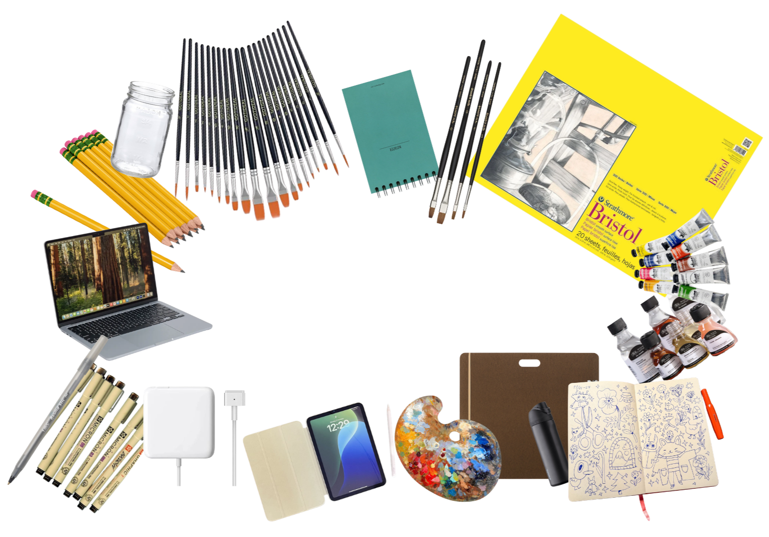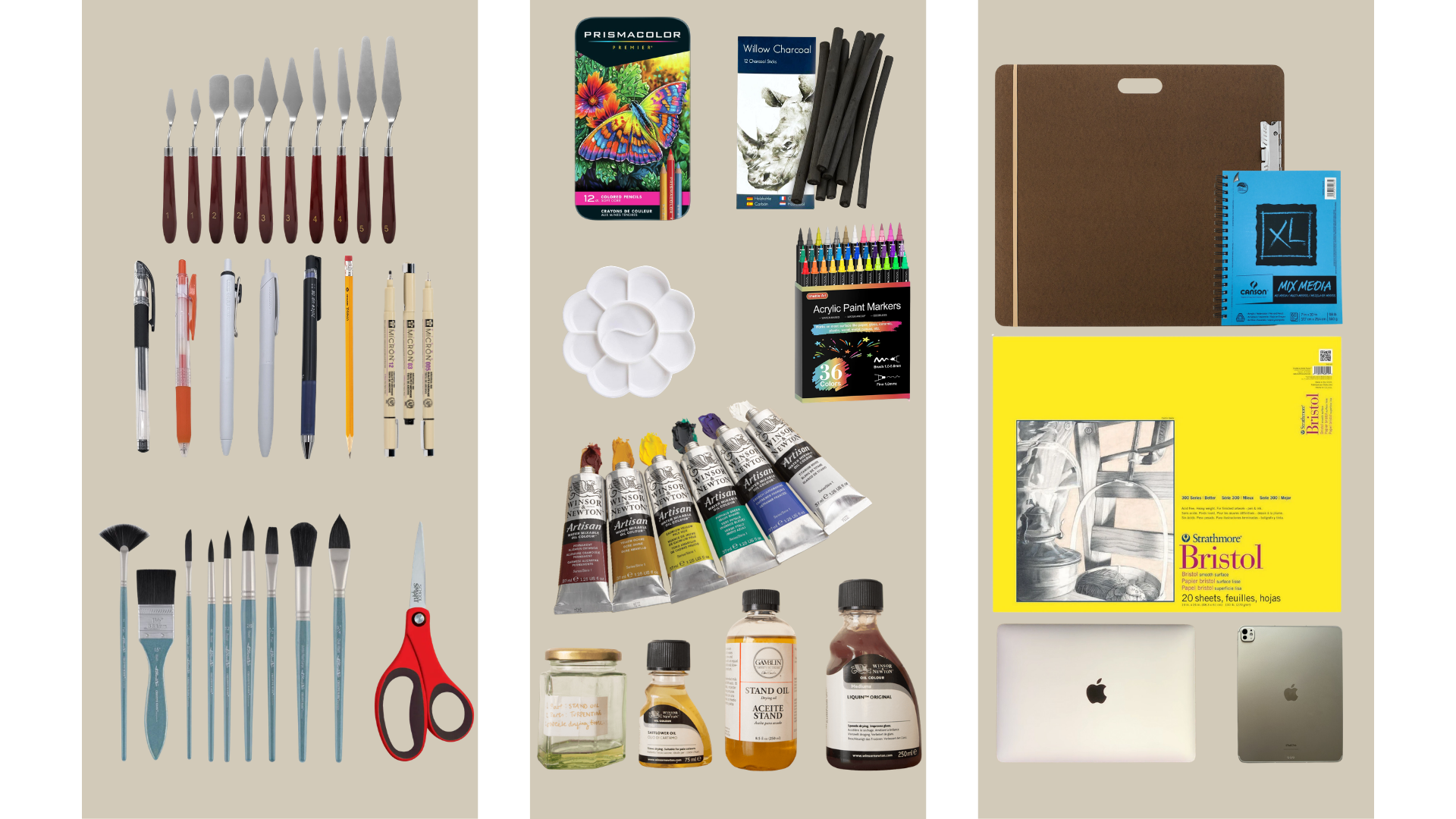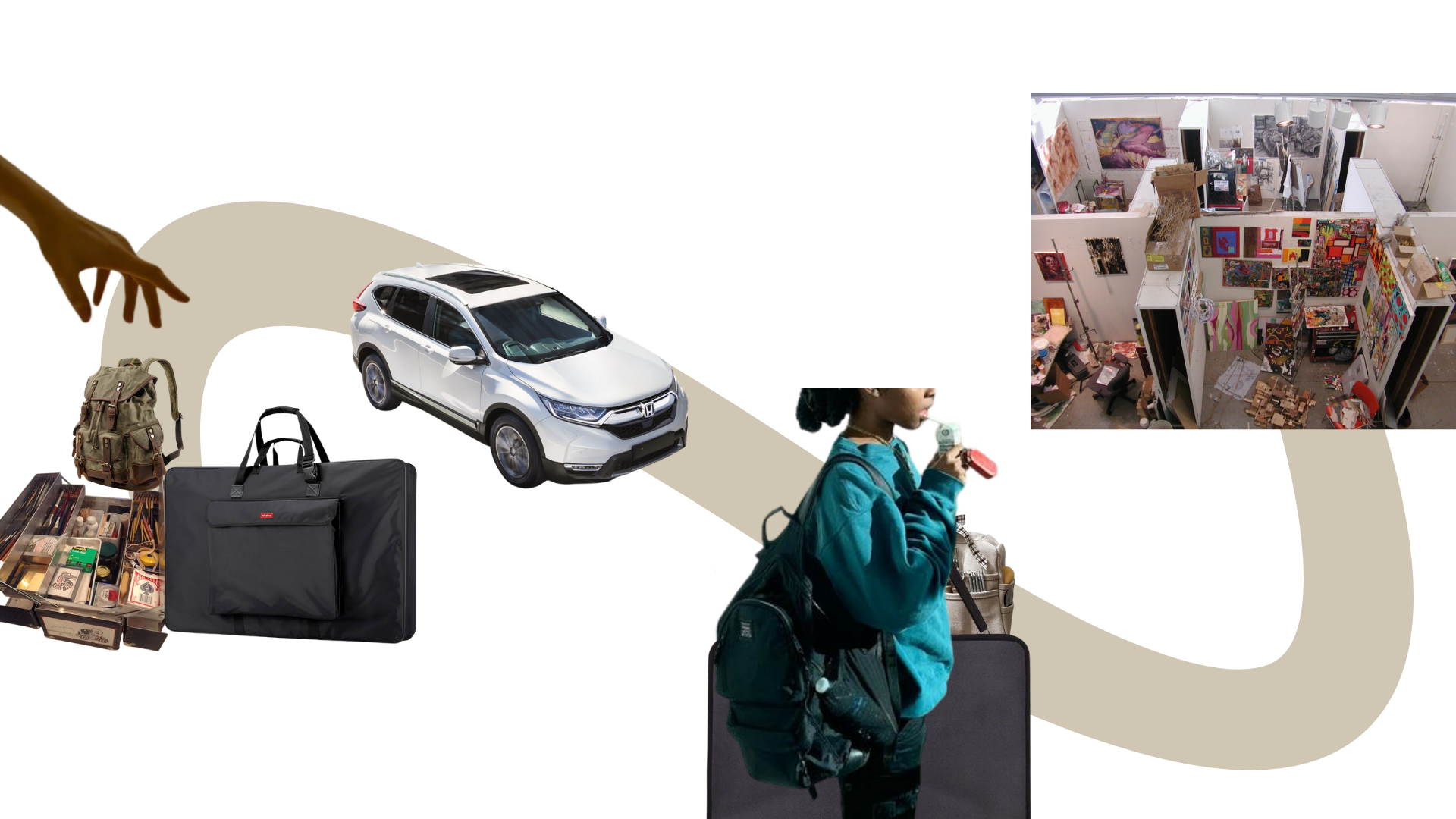 This is about what most traditional painters have to bring to school everyday spread about three bags